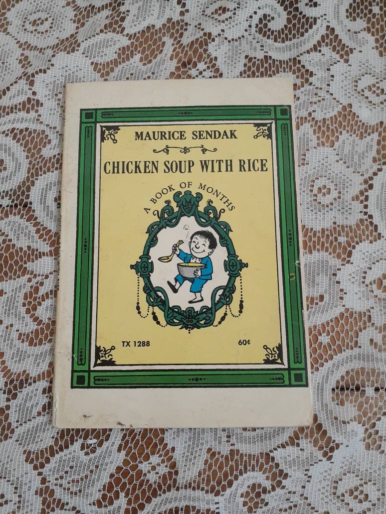 Cookin once cookin twice Cookin chicken soup with rice In September for a while I will ride a crocodile Down the chicken soupy Nile Paddle once paddle twice Paddle chicken soup with. Chicken Soup With Rice By Sendak King Chicken Rice Soup Kids Poems Childhood Books.